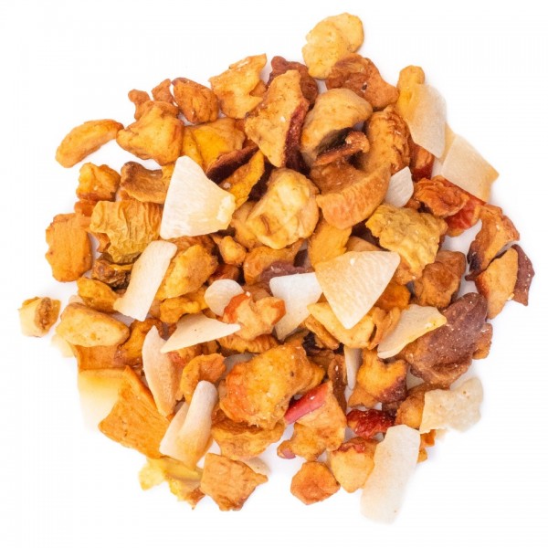 L’Infuso Paradisiaco combina la dolcezza delicata della Mela Bianca con l’esplosione di sole di Mango, Papaya e Cocco. Le note agrumate di Arancia e Limone ne esaltano la freschezza, creando una miscela succosa e irresistibile. Perfetto sia caldo che ghiacciato per una pausa esotica in qualsiasi momento della giornata.
